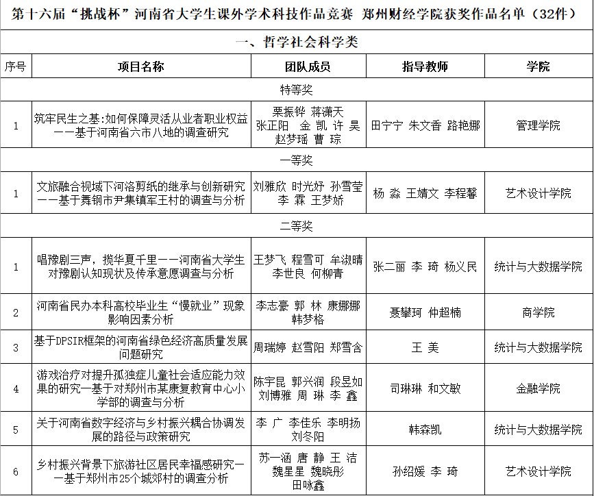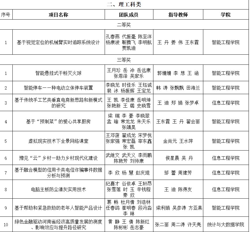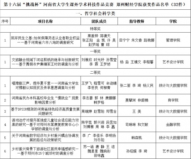 第十六届“挑战杯”河南省大学生课外学术科技作品竞赛威廉希尔官网获奖作品名单