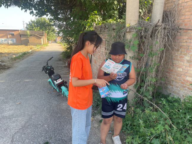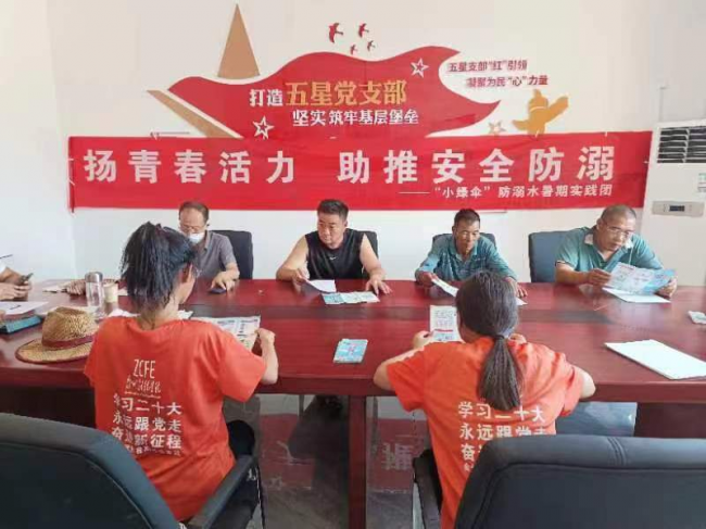 实践团成员为辽宁省沈阳市英守村村民普及防溺水安全知识