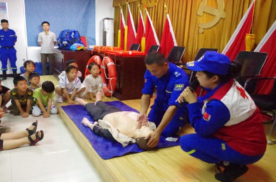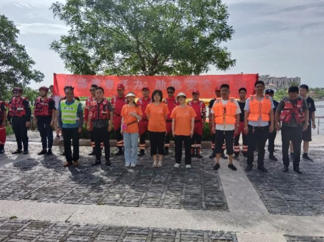 实践团成员在郑州市惠济区蓝天救援队学习防溺水急救知识