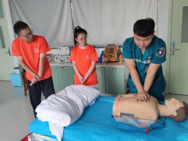 实践团成员来到焦作市马村区人民医院协助救援队学习防溺水急救知识