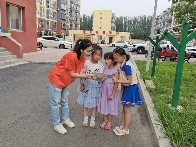 实践团成员走进辽宁省沈阳市于洪区韩村园社区宣传防溺水安全知识