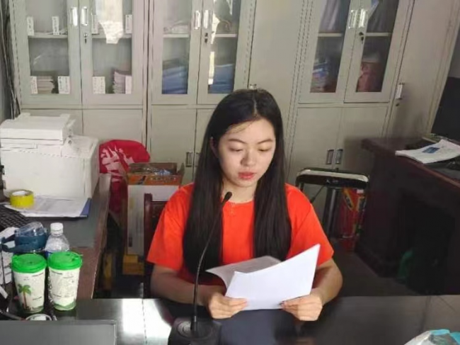 实践团成员走进河南省驻马店市遂平县蒋庄村用村委会的广播站宣传防溺水安全知识