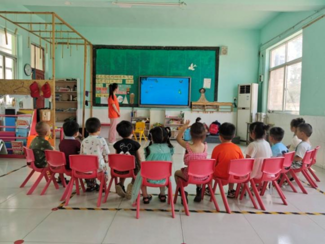实践团成员在河南省焦作市修武县七贤镇幼儿园开展防溺水安全知识讲堂