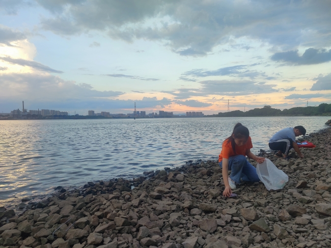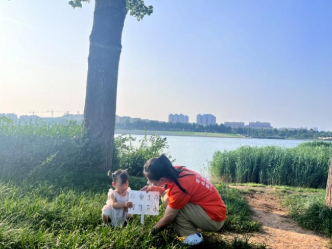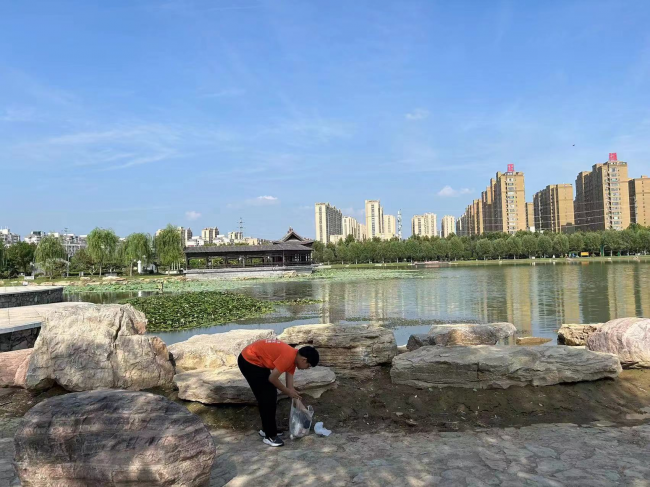 团队成员在河南省焦作市黄河支流沁河旁开展环保行动