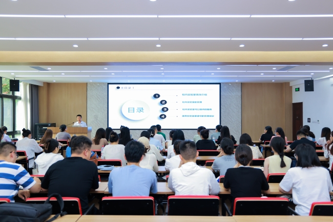 首场培训在德正楼第一学术报告厅举行。周来从学校实验实训室建设总体情况、实验室管理、可提供的服务内容、使用实验室要遵守的管理规定等方面进行了介绍,并强调了实验教学中可能存在的危险因素及相应的防范措施,提醒新教师要认真执行实验室安全管理制度,确保实验教学能够顺利进行。