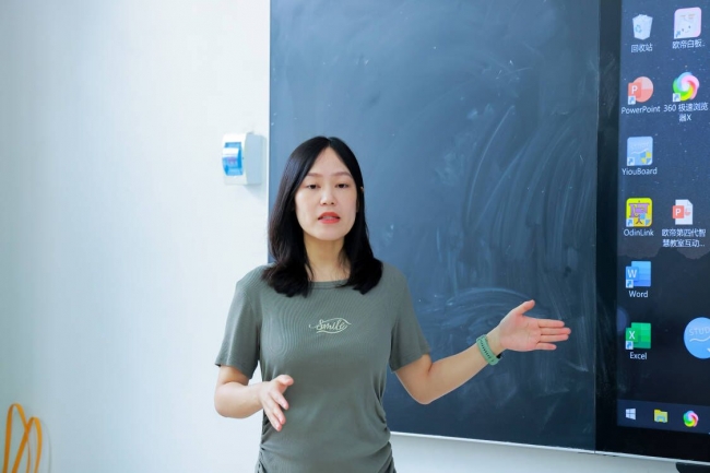 第二场培训在育爱楼106教室举行,欧帝科技公司马赫笛围绕学校多媒体教室纳米黑板的功能、使用方法、注意事项等方面进行详细介绍及操作演示,并针对老师们的疑问进行互动答疑。随后,老师们在提供的开放教室进行实操练习,并由教务处工作人员进行现场指导。