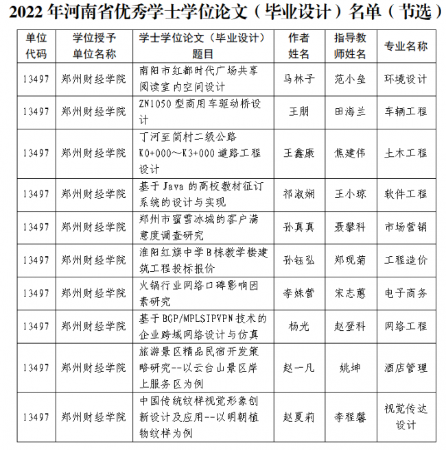 威廉希尔官网10篇本科毕业论文(设计)获评2022年河南省优秀学士学位论文