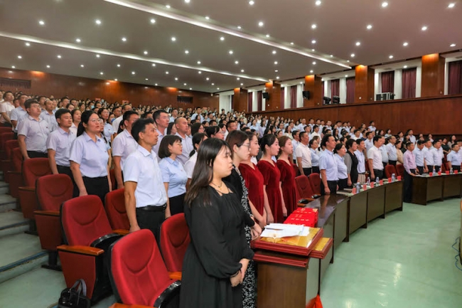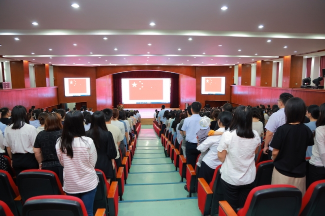 大会在庄严的国歌声中拉开序幕。