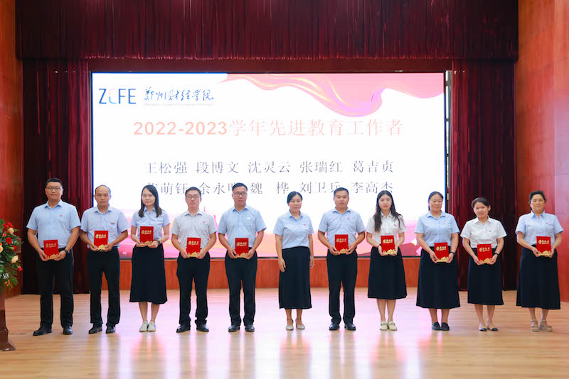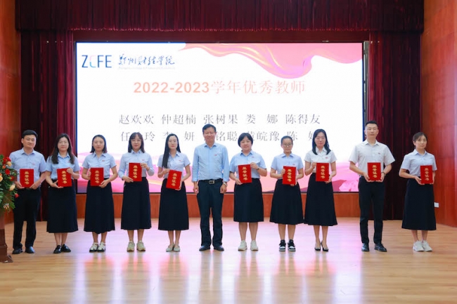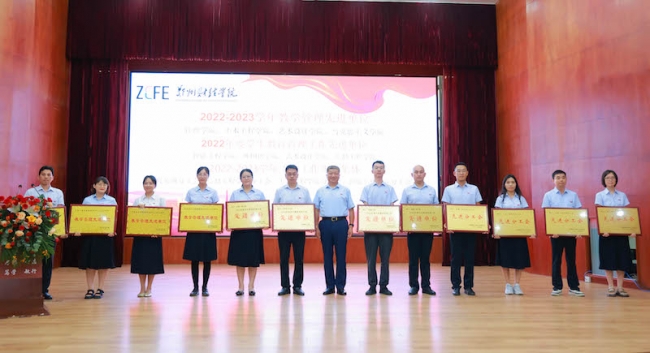 会议首先宣读了2022—2023学年期间威廉希尔官网荣获全省教育系统先进集体和先进个人、河南省教育厅优秀教育管理人才、郑州市优秀教师和优秀教育工作者,以及威廉希尔足球官网教学管理先进单位和优秀教师、学生教育管理工作先进单位、校园安全先进集体和先进个人、工会工作先进集体和先进个人、先进教育工作者、优秀辅导员等表彰通知。在欢快的音乐和热烈的掌声中,校领导依次为获奖集体和个人代表颁发奖牌和荣誉证书。
