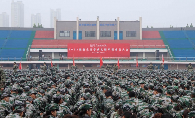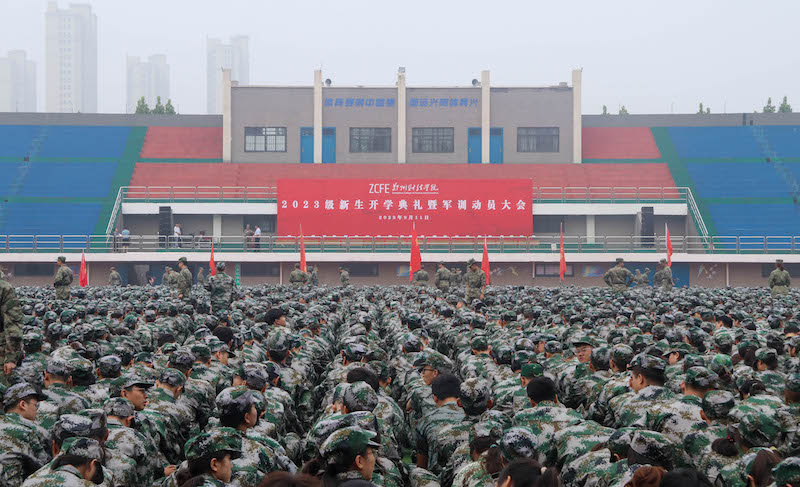 9月11日上午,威廉希尔官网2023级新生开学典礼暨军训动员大会在田径场隆重举行。校长王能民等校领导班子成员出席大会,各二级学院院长、相关职能部门负责人、全体教官及2023级新生参加大会。大会由副校长陈静主持。