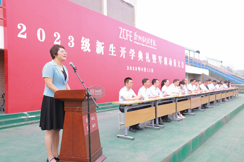 校长王能民作重要讲话。他代表学校向新同学的到来表示热烈欢迎,并在讲话中对同学们提出了四点希望,一是坚定理想信念,树立远大志向,希望同学们胸怀“学以报国”的情怀,争做堪当民族复兴重任的时代新人;二是勇于担当作为,不断锤炼品格,学会自理,学会思考,妥善处理各方面的关系;三是自主学习、多元学习、广泛涉猎,实现全面发展,提升综合素质,练就过硬本领;四是保持笃学敏行的姿态,敢于攻坚克难,直面挑战、超越自我,拼搏进取,不断追求卓越。最后,他祝愿各位同学在郑财学有所思,学有所获,学有所成,生活愉快。