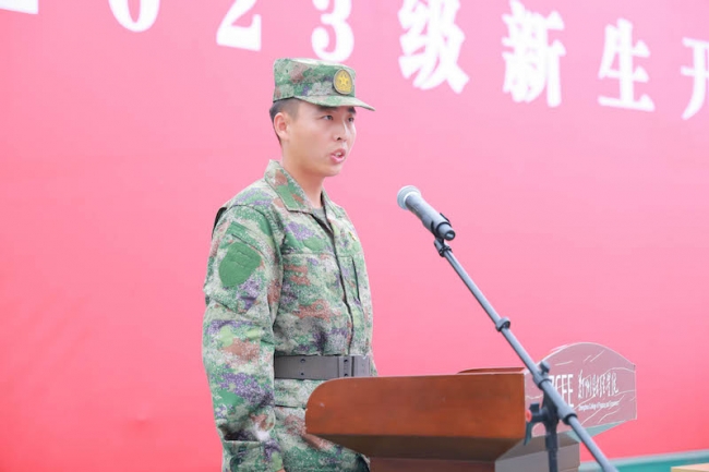 宋庆龙代表全体教官发言,他希望同学们在军训中培养崇高坚定的理想信念,历练勇于担当、不畏艰险的战斗精神,增强组织纪律观念。他表示,全体教官要严于律己,树立良好形象,用过硬的本领带领同学们拼搏进取,磨练意志,有所启迪,并祝愿本次军训圆满成功。
