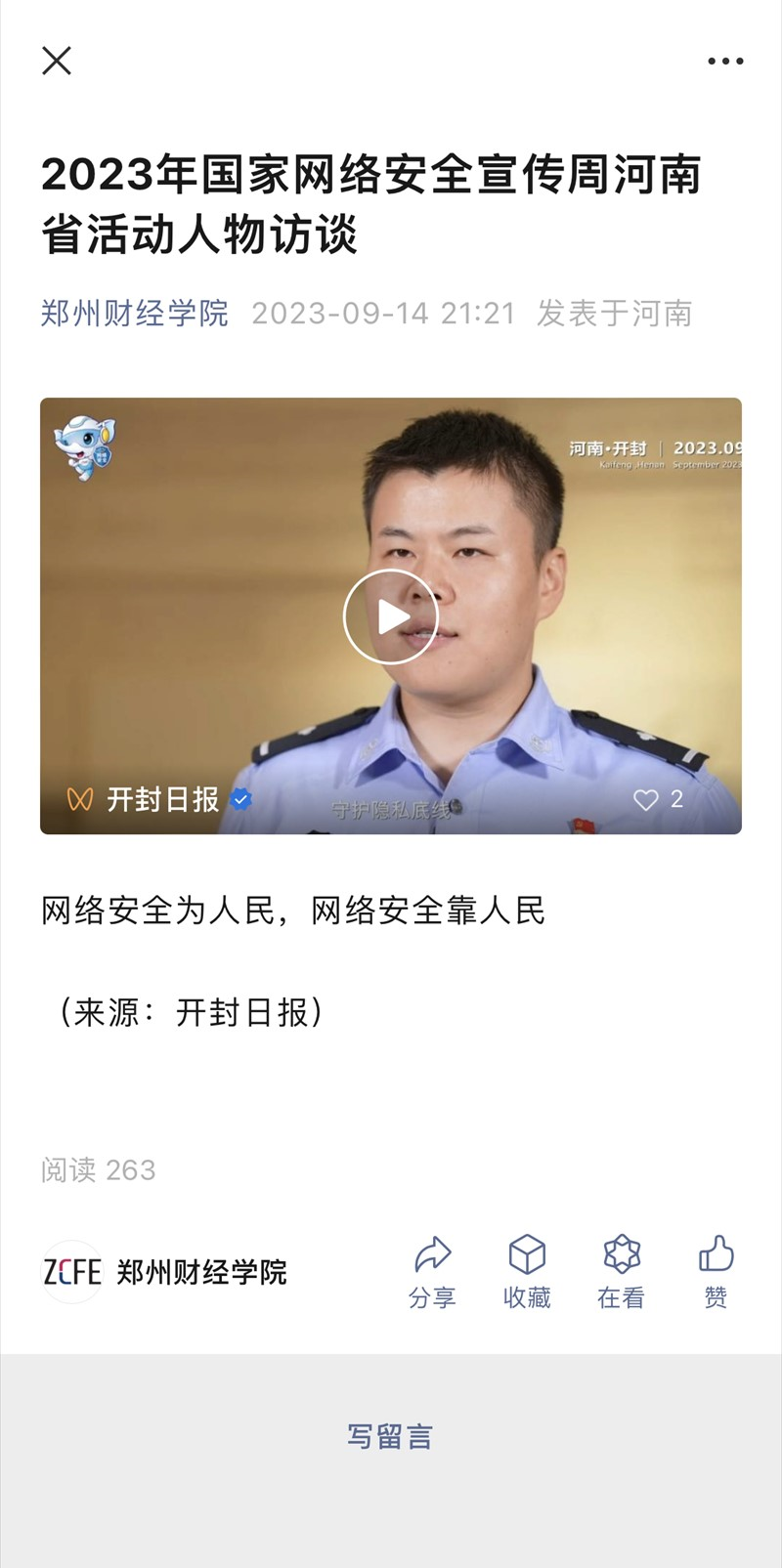 学校党委宣传部及各二级学院协同联动,充分运用校园网、微博、微信、短视频平台、橱窗条幅等方式,宣传网络安全相关知识, 进一步扩大宣传效果。