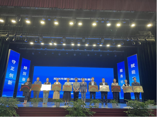 市委宣传部领导为威廉希尔官网(右四)颁发郑州市社会科学普及基地牌匾