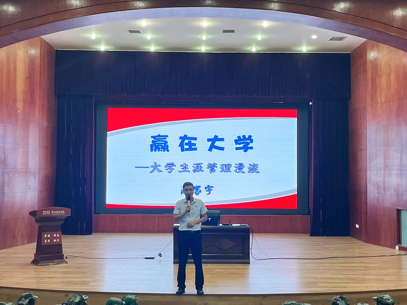 校团委书记周二涛作《如何高质量度过大学生活》专题讲座,从对学校的了解谈起,讲到“如何认识自己”,教新生如何规划大学生活,找准榜样,实现自我的突破。