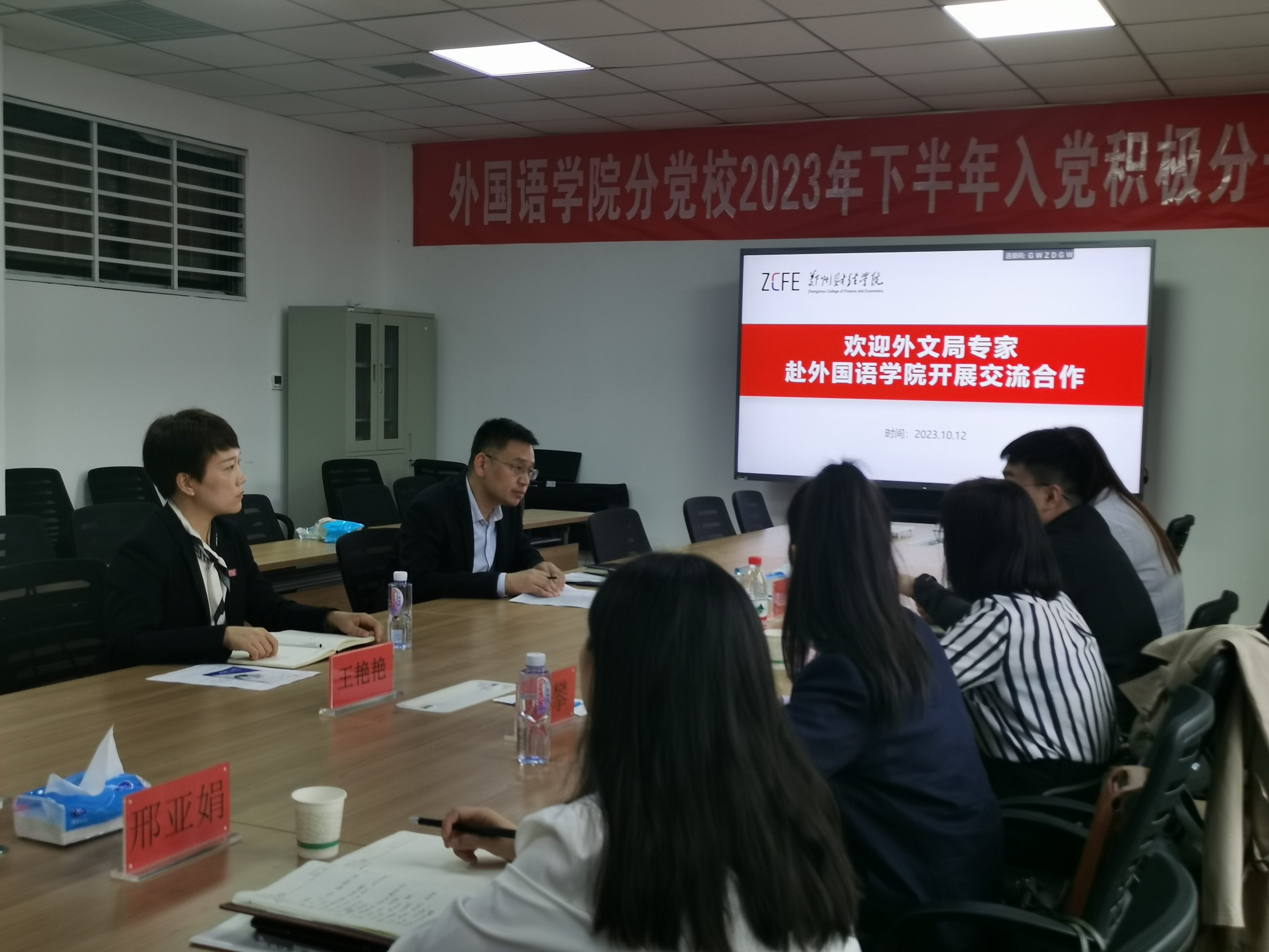 随后,外国语学院邀请中国外文局CATTI考试项目中心一行专家进行深度座谈,进一步交流外语教育面临的挑战、发展和潜力。双方表示,CATTI国际版考试作为对CATTI现有考试体系的补充与延伸,对于提升学校服务地方经济发展的能力、学生的外语应用能力以及促进外语就业市场发展、推动中国文化走出去具有重要意义。