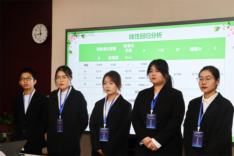 下午,参赛选手在比赛答辩室对前期提交的调研方案设计进行答辩展示。答辩后,专家评委组在德惠楼404会议室召开评委会议,对比赛过程中选手们的表现、数据分析环节、分析报告等进行点评。