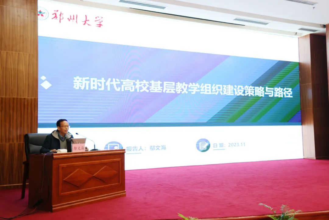 下午,郑州大学鄢文海教授以《新时代高校基层教学组织建设策略与路径》为题作报告。他围绕新时代本科教育的特征和基层教学组织作用、基层教学组织内涵的变迁与创新、高校基层教学组织面临的问题和挑战、高校基层教学组织未来建设的工作重点、提升高校基层教学组织建设的策略与路径、基层教学组织的考核评价六个方面进行了详细讲解。鄢教授的报告主题鲜明、内容详实、逻辑清晰,既有理论高度,又有实践深度,对推进威廉希尔官网基层教学组织建设与管理工作具有重要作用。