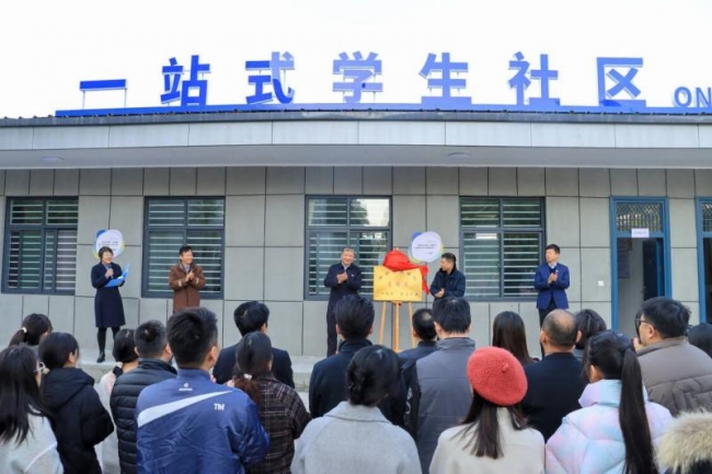 校长王能民和校监事会主席李庆阳为“一站式”学生社区揭牌。