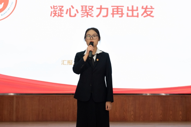 “校园魅力团支书”学生代表焦翘楚进行汇报展示