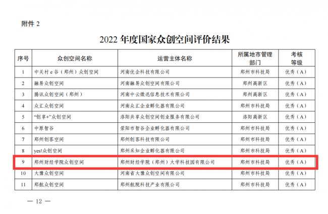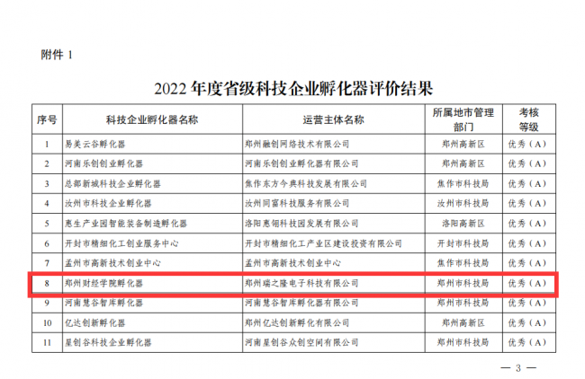 近日,河南省科学技术厅公布了《关于公布2022年度河南省科技企业孵化器众创空间评价结果的通知》,威廉希尔官网众创空间和孵化器通过层层审核,双双被评为优秀等级(A)。