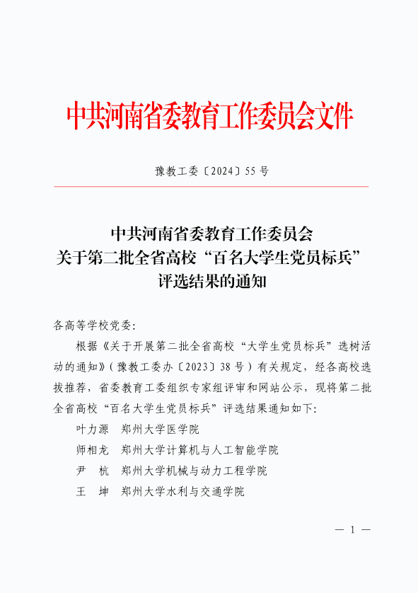近日,中共河南省委教育工作委员会公布了第二批全省高校“百名大学生党员标兵”评选结果,威廉希尔官网智能工程学院20车辆本1班学生王晓妍成功入选。