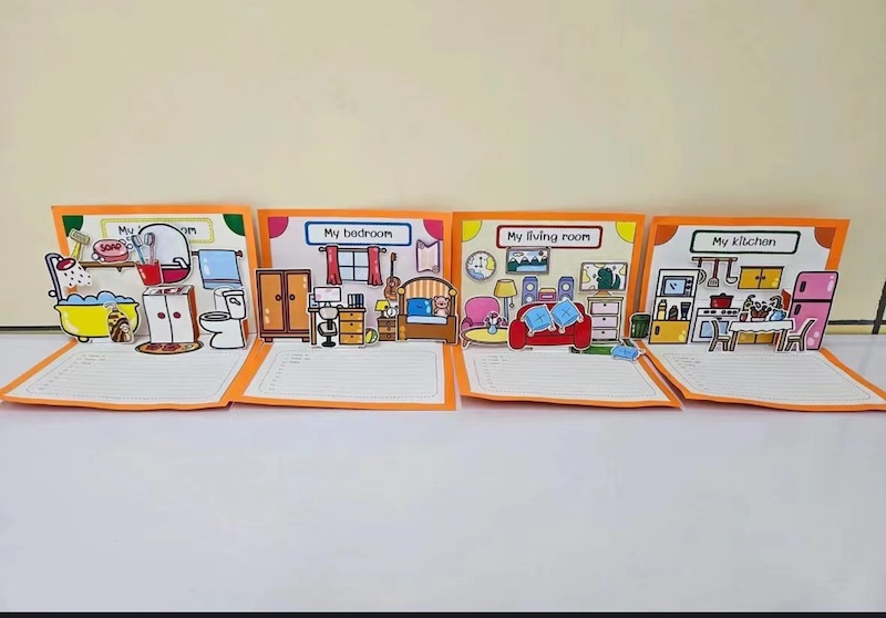 动物园里形态各异的“小动物”、立体式功能齐全的“家庭陈设”、形象逼真的“汉堡包”……经过设计、绘图、上色、剪裁、粘贴等工序,一套套图文结合、样式丰富、惟妙惟肖的教具出现在讲台上,并接受台下“评委”打分。