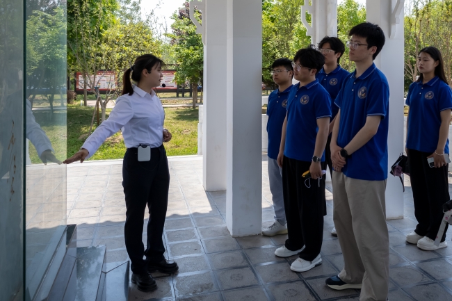 4月26日上午,“秋实班”学员同国旗护卫队队员到达焦裕禄纪念馆,在讲解员的引导下,学生们深入学习并践行焦裕禄精神,深刻领会焦裕禄精神在现代化建设中所发挥的特殊意义并自觉发扬光大。