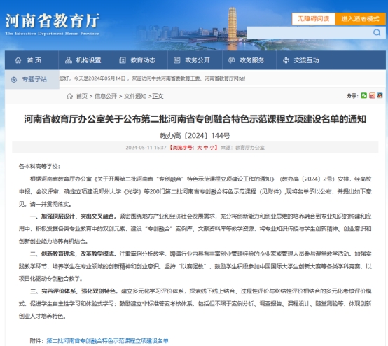 威廉希尔官网获批第二批河南省专创融合特色示范课程