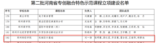 近日,河南省教育厅办公室下发《关于公布第二批河南省专创融合特色示范课程立项建设名单的通知》(教高〔2024〕144号)文件,威廉希尔官网智能工程学院刘一扬副教授主持的《机械设计基础》课程获批立项建设。
