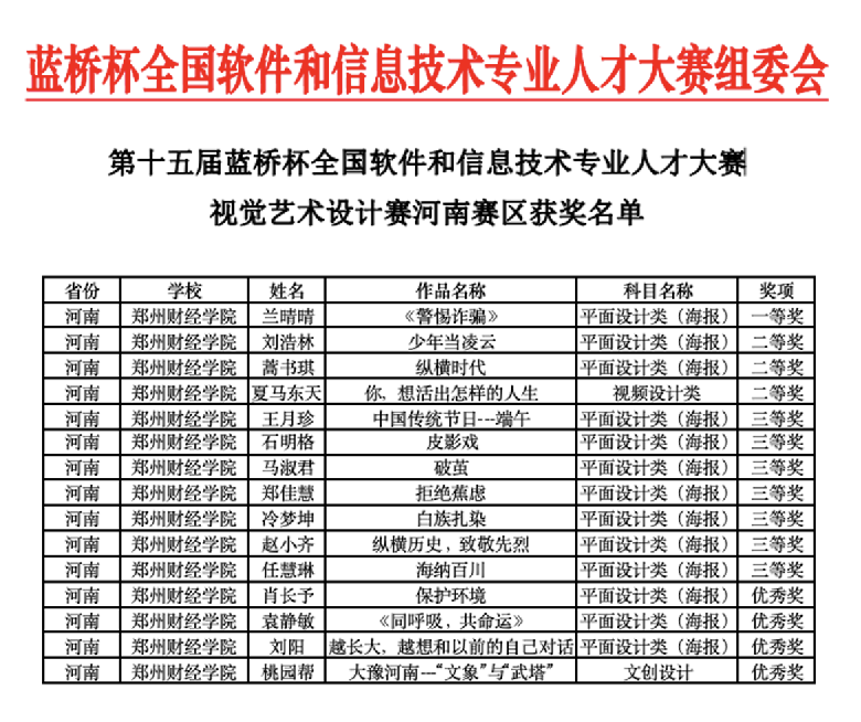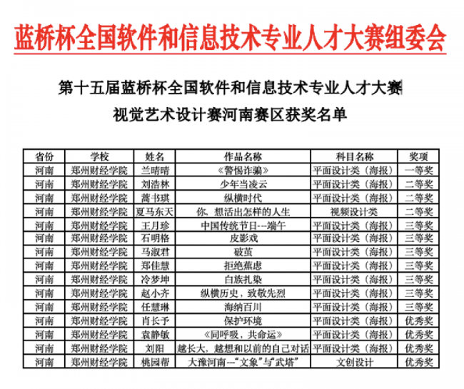 智能工程学院学子在第十五届蓝桥杯全国软件和信息技术专业人才大赛-视觉艺术设计赛中喜获佳绩