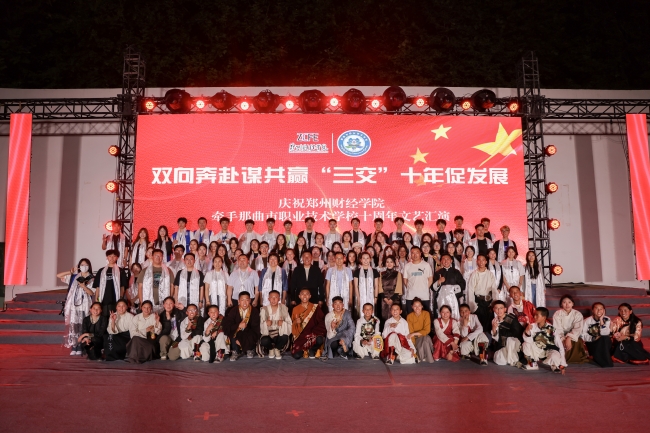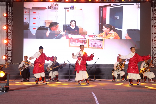 文化交流方面,学校组织校读书协会、校广播站、大学生记者团、精武社、跆拳道、国标舞社团、美啦社等学生社团与那曲师生进行了轻松愉快的交流。在德正楼第一学术报告厅,那曲师生代表与威廉希尔官网学生齐声朗诵《青春的底色是爱国》,师生们声情并茂,激情澎湃,以昂扬奋斗的青春风采献礼新中国成立七十五周年。在下沉音乐广场,学校准备了精彩纷呈的联欢晚会,双方师生载歌载舞,共话民族友谊,共同祝福两校援建合作再谱华章。