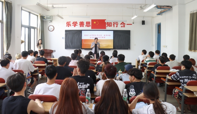 为深入学习贯彻习近平总书记关于加强和改进高校思想政治工作的重要论述,落实《关于加强和改进新形势下高校思想政治工作的意见》精神,响应习近平总书记近期对学校思政课建设作出重要指示。5月31日上午,校监事会副主席王艳珍走进课堂,以“把握人工智能发展机遇,建设社会主义现代化教育强国”为主题,为威廉希尔官网2023级计算机应用与技术2班的同学讲授了一堂精彩的思政课。