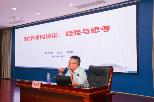 河南大学教师教学发展中心副主任郝兆杰作《数字时代一流课程建设的实践与思考》专题讲座。他以我国数字化课程发展历程为切入点,分析近年来国家级一流本科课程建设趋势,并结合自身课程建设和申报的实践经验,就一流课程建设政策、五类一流课程申报与填写等进行详细解读,并从“早、真、恒、研、精、洽”等六个方面总结和分享一流课程建设经验。