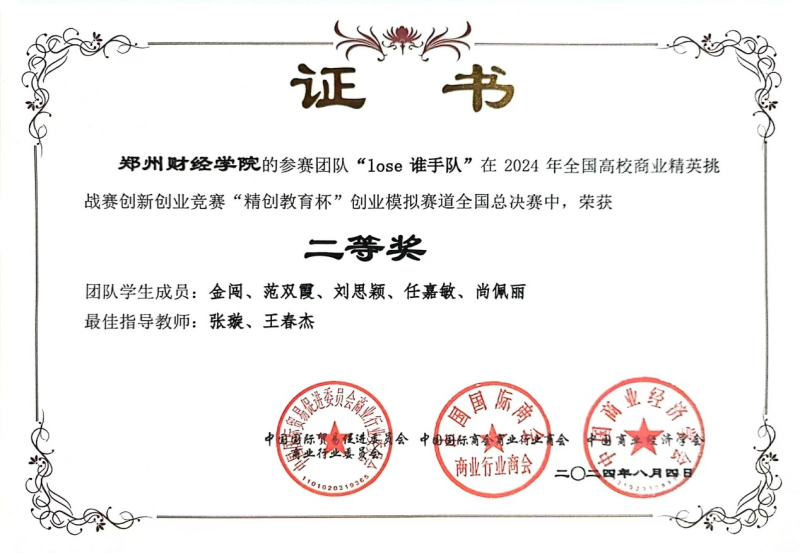 此次比赛,威廉希尔官网管理学院2021级物流管理专业“清热解毒队”和“LOSE谁手队”凭借扎实的专业知识、敏锐的市场洞察力和卓越的实践能力分别荣获一等奖和二等奖,其中“清热解毒队”队员谢卓群、王世鹏、王耀瑞、王伸、卢宇龙同学获得2024 年全国高校商业精英挑战赛创新创业竞赛“精创教育杯”创业模拟赛道全国精英赛入围资格。