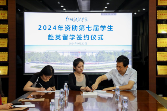最后,校领导为第七批赴英留学生代表授旗,并与学生签署协议,合影留念。