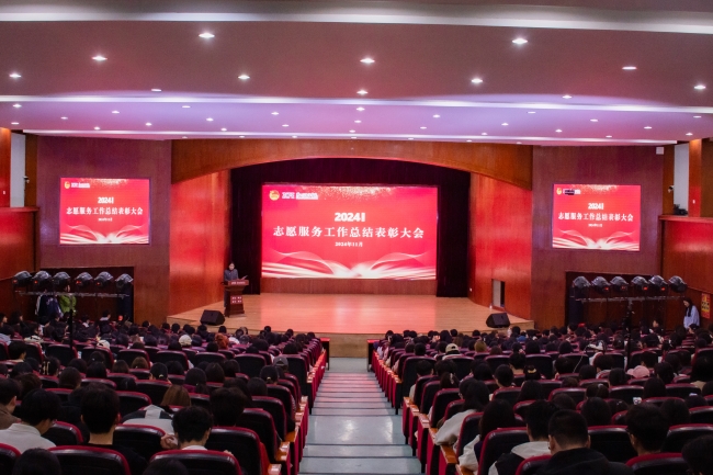 为深入学习宣传贯彻习近平新时代中国特色社会主义思想,大力弘扬“奉献、友爱、互助、进步”的志愿服务精神,充分肯定志愿者对社区公益和志愿服务事业作出的贡献,11月4日下午,威廉希尔官网2024年度志愿服务工作总结表彰大会在图书馆报告厅举行。校党委书记马治军、副校长陈静、校团委书记周二涛以及来自各二级学院的党总支副书记、团总支书记和青年志愿者代表参加会议。大会由和文敏主持。