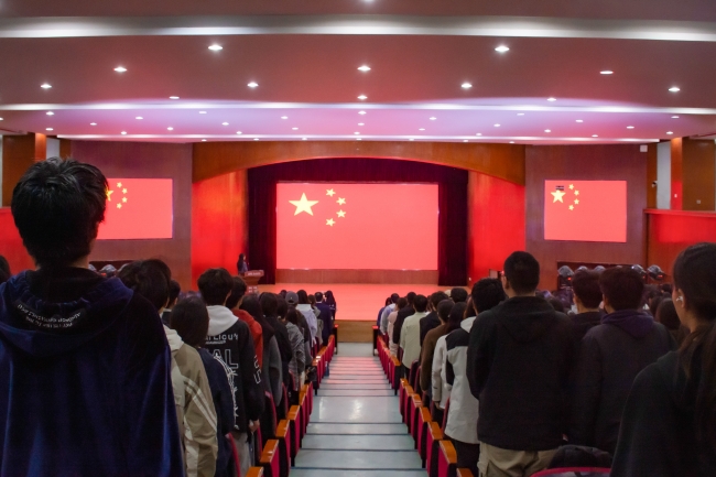 会议伊始,全体肃立奏唱中华人民共和国国歌。大会在庄严的国歌声中正式拉开序幕。