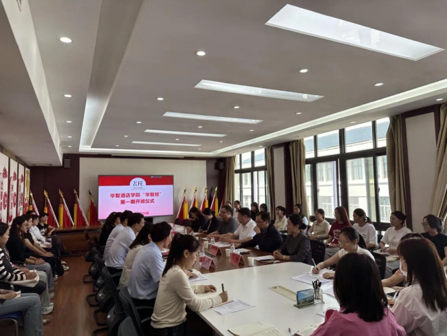 一年多来,双方积极落实合作意向,深入探索、筹备2024年9月24日华智酒店学院首届校企合作班“华智班”顺利开班。经自主报名、学院考核,选拔35名22级酒店管理专业学生成为“华智班”首届学员。