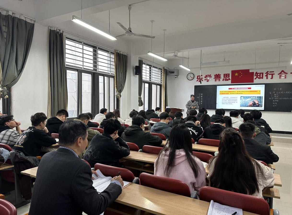 为深入贯彻落实习近平总书记关于学校思政课建设的重要指示精神,提升思政课教师的教学能力和思政课教学效果,持续筑牢思政课堂意识形态主阵地,11月13日,校长吴中在马克思主义学院相关领导的陪同下,走进2023级土木工程专升本1班的思政课堂,听取马克思主义学院教师王文君主讲的《习近平新时代中国特色社会主义思想概论》课程。