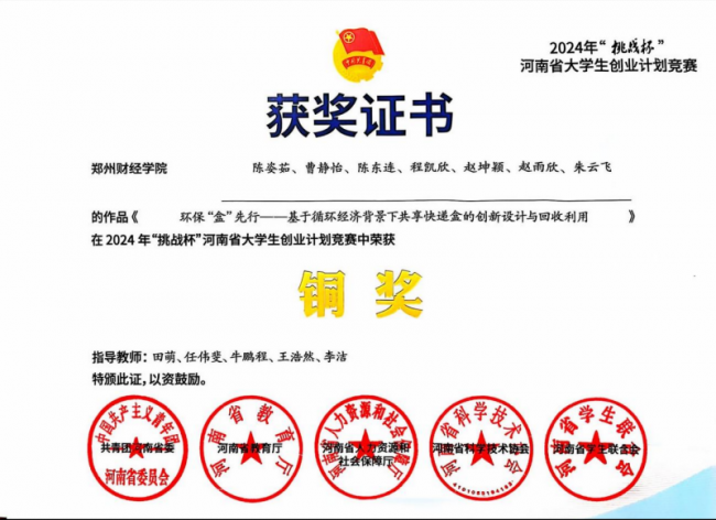 近日,由共青团河南省委、河南省教育厅、河南省人力资源和社会保障厅、河南省科学技术协会、河南省学生联合会主办的2024年“挑战杯”河南省大学生创业计划竞赛圆满落幕。此次竞赛,我院学子勇创佳绩,共斩获银奖1项,铜奖3项,在数量上取得新突破。