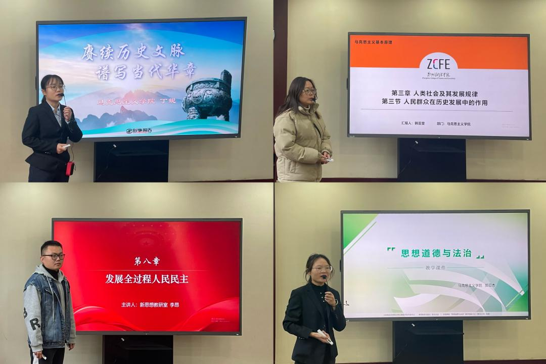 切实抓好两支队伍,实现作风引领。坚持抓好党员干部和思政课教师两支队伍,严把“入口”,确保两支队伍的先进性和纯洁性。严格落实“双带头人”责任制,选拔党性强、业务精、作风硬的6位教研室主任担任党支部书记,以“三会一课”基本制度为依托,定期组织支部成员进行理论学习、组织生活。严肃培养,持续抓好“4331”助教导师制培养工程,发扬传承好老带新的传帮带作用,构建了以参加省市思政课教学技能大赛为主体、以组织调训和党员在线学习为两翼的“一体两翼”思政课教师队伍培训模式,努力打造一支“政治强、情怀深、思维新、视野广、自律严、人格正”的高素质教师队伍。