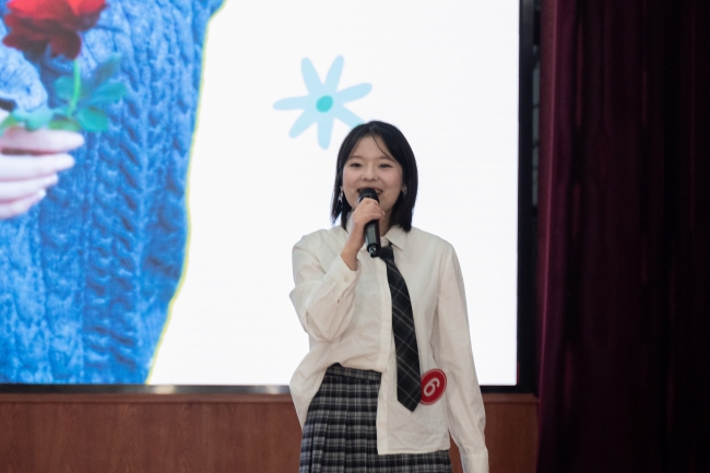 文化与传媒学院团总支书记李小慧为三等奖获奖选手颁奖