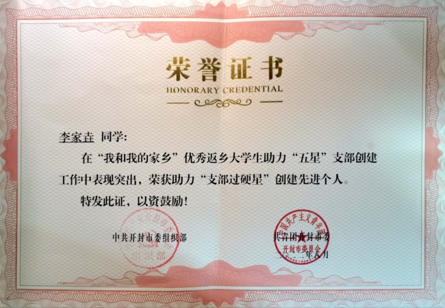 李家垚,中共预备党员,管理学院2021级酒店管理本科2班。曾担任校“青马工程”秋实班团支部副书记、校广播站站长、校图书馆讲解员等职务。先后荣获“国家奖学金”、河南省“文明大学生”、校“三好学生”、第十届“校园卓越学子”等荣誉。担任校“青马班”团支部副书记期间,“青马班”先后荣获河南省思想政治类“十佳社团”、河南省“活力社团”等荣誉。