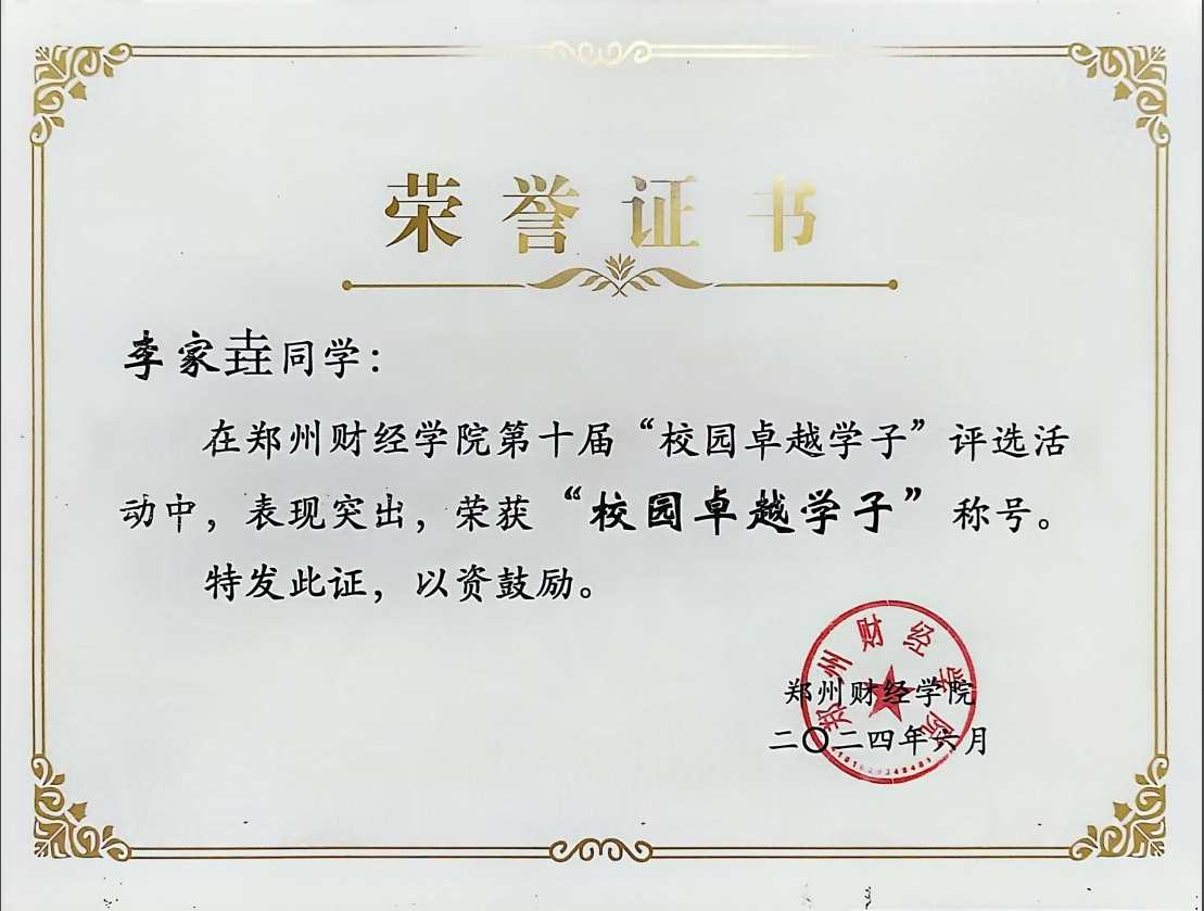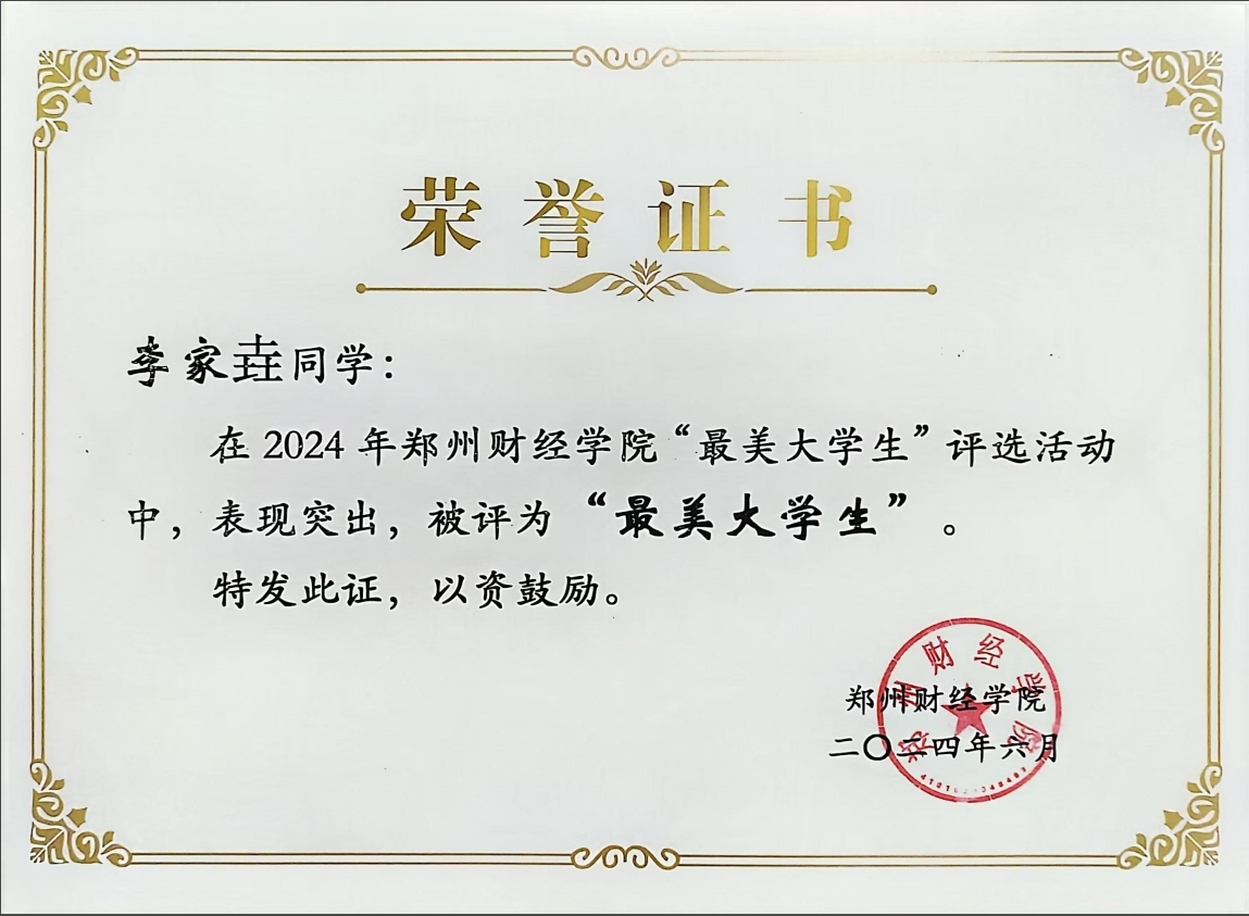 “青春乃晨曦之初露,犹花朵之含苞待放,剑刃之新磨出鞘,实为人生中最璀璨之时光。”踏入大学后,李家垚深知“学习是学生的第一要务”。怀揣着对未来的无限憧憬,她在专业学习领域踏踏实实,稳步前进。