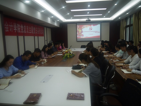 9月25日下午,在B308会议室,会计学院党总支学生支部全体党员举行了本学期第一次主题党日活动。此次党日活动以“重温入党誓词”为主题,活动内容包括传达《会计学院党总支2017-2018学年第一学期主题党日活动方案》、重温入党誓词和向黄大年同志学习三项议程。