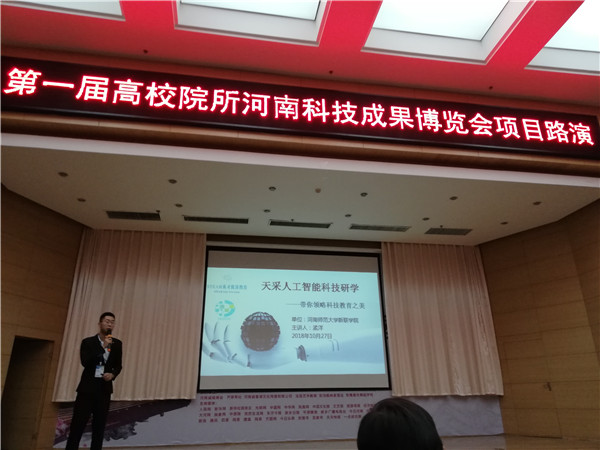 在平原博物院一楼多功能大厅,来自河南省师范大学等高校的师生对《嵌入式电波折射修正系统》,《活性污泥降解有机物二氧化碳浓度原位测定仪》、《天采人工智能科技研学》等项目做了路演汇报。