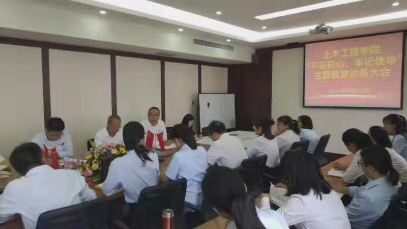 本次主题教育动员部署会议拉开了土木工程学院“不忘初心、牢记使命”主题教育的序幕。土木工程学院全体师生党员将以高度的政治自觉、思想自觉、行动自觉投身到此次主题教育活动中去,把本次主题教育激发出来的积极性、主动性、创造性转化为全院师生努力工作的强大动力和实际行动,以优异成绩迎接新中国成立70周年。