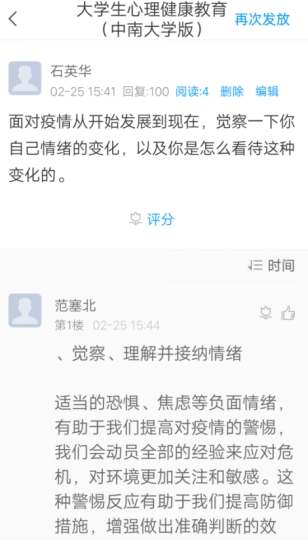 疫情防控期间,大学生心理健康教育课程组迅速行动,集思广益,创新课堂教学新模式。根据学校和学院的要求及时调整课程教学方案,组织开展线上教学,并将此次疫情作为线上课堂教学的素材,促进学生与灾难共成长,增强心灵韧性。