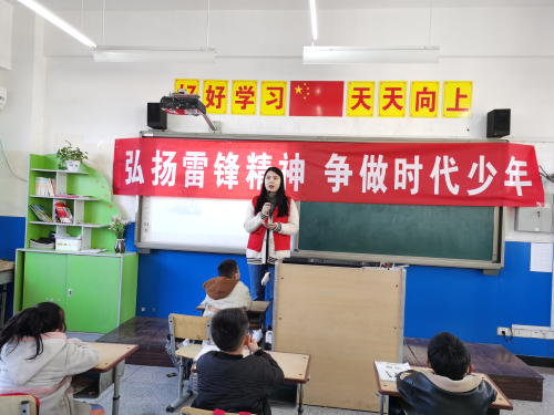 团总支副书记杜文静作雷锋精神演讲 学生会成员们带着《雷锋的故事》发放给双桥小学的同学们,希望他们能够认真学习雷锋精神。团总支副书记杜文静声情并茂地展示了雷锋的生平和助人奉献的小故事,通过形象生动的故事让小少先队员们了解了雷锋的成长历程和先进事迹,并鼓励每一位少先队员都要学习雷锋精神,长大成为一个对社会有贡献的人。